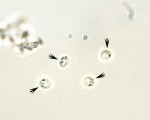 Cyst are oval to ellipsoid and measure 8-19 µm (average 10-14 µm).