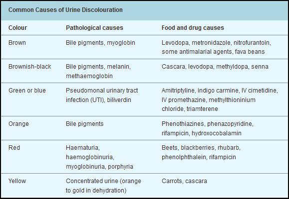 Common causes of Urine discolouration