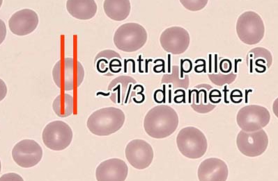 Central Pallor is around 1/3 of red cell diameter