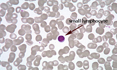 Small Lymphocyte – compare normal rbc size with small lymphocyte nucleus