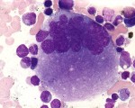 Megakaryocytes are among the largest cells in the bone marrow. The nuclei generally have multiple lobes, and the cytoplasm is granular. Occasionally platelets can be seen “budding” ...